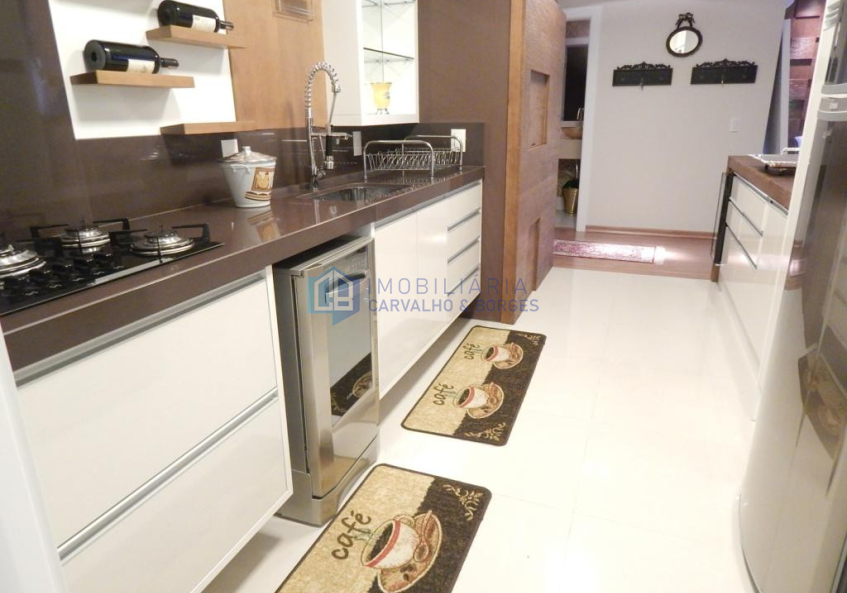 Luxuoso apartamento duplex, no centro, com 04 suítes, cozinha americana com churrasqueira, living com lareira, jantar, lavabo, sala de cinema, sala de leitura, escritório. Prédio com playground, vídeo porteiro, gás central, esperas para calefação e split, elevador, aproveitamento da água da chuva, hidrometro individual.