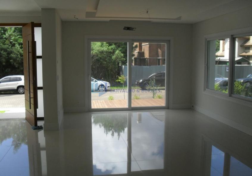 Excelente residencia em condomínio fechado com completa infraestrutura de lazer, edificada em lote com nível acima da rua, em alto padrão de qualidade, composta por quatro suítes sendo duas com sacada, lavabo, sala de estar, sala de jantar, cozinha separada, espaço gourmet com churrasqueira revestido em mármore, , lavanderia, dependência de empregada com banho, banheiros com piso aquecido, sótão rebaixo em gesso, piso laminado nas áreas comuns, porcelanato, escada em mármore travertino, paredes duplas, garagem com pergolado, esperas para Split e calefação, aberturas em PVC com vidros duplos, percianas com automação.