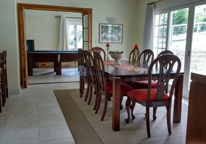 Casa mobiliada, em excelente condomínio na Serra Gaúcha, localização e orientação solar perfeitas, distribuída em 3 suítes, sótão com banho social, sala de estar junto aos dormitórios, banho social, sala de estar, sala de jantar, sala de jogos, ampla cozinha, lavanderia, adega, garagem coberta para 2 carros, calefação, água quente, árvores frutíferas.