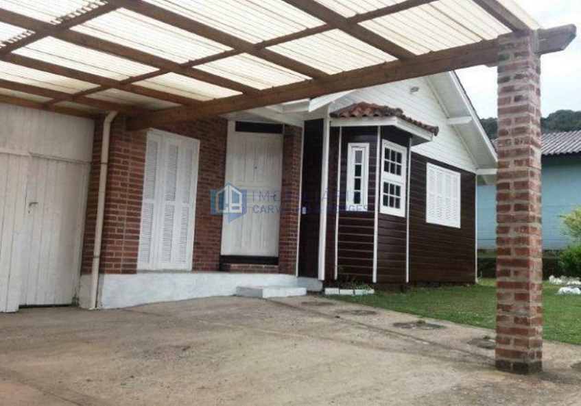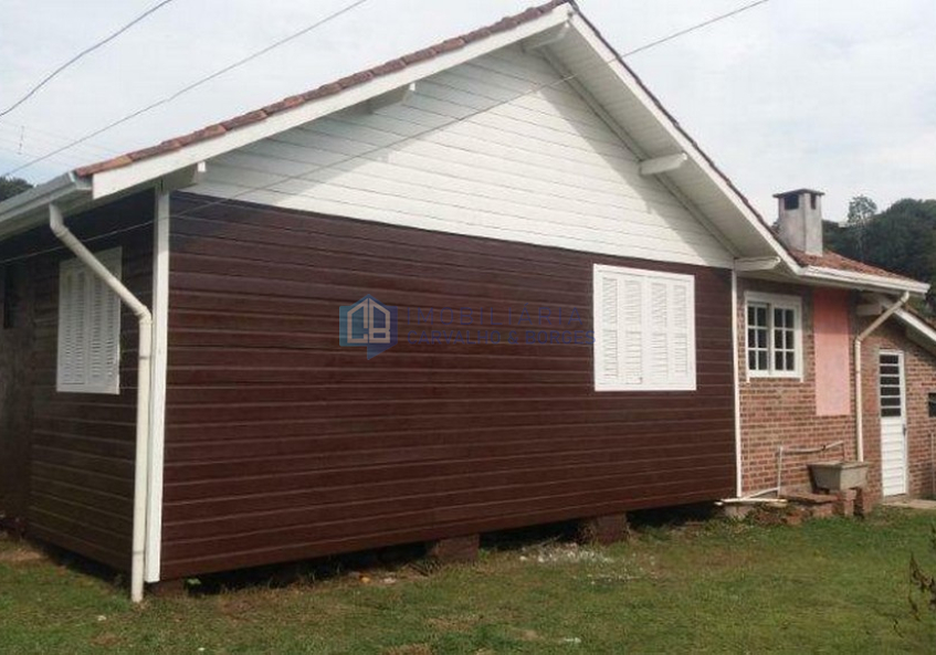 Casa mista, telha em barro, distribuída em 2 dormitórios, banheiro social, sala de estar com lareira, cozinha com fogão campeiro e churrasqueira, lavanderia e garagem coberta para dois carros. Terreno medindo 480m², sendo 20m de frente, plano e cercado, via com calçamento.