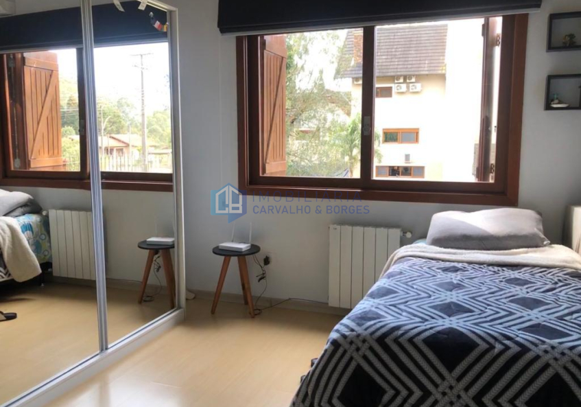 Ótima casa geminada em Canela à 2 km do centro. Contando com 2 dormitórios sendo os mesmos suítes, closet, lavabo, adega, churrasqueira, laleira, mezanino, ar condicionado, quintal e uma vaga de garagem coberta.