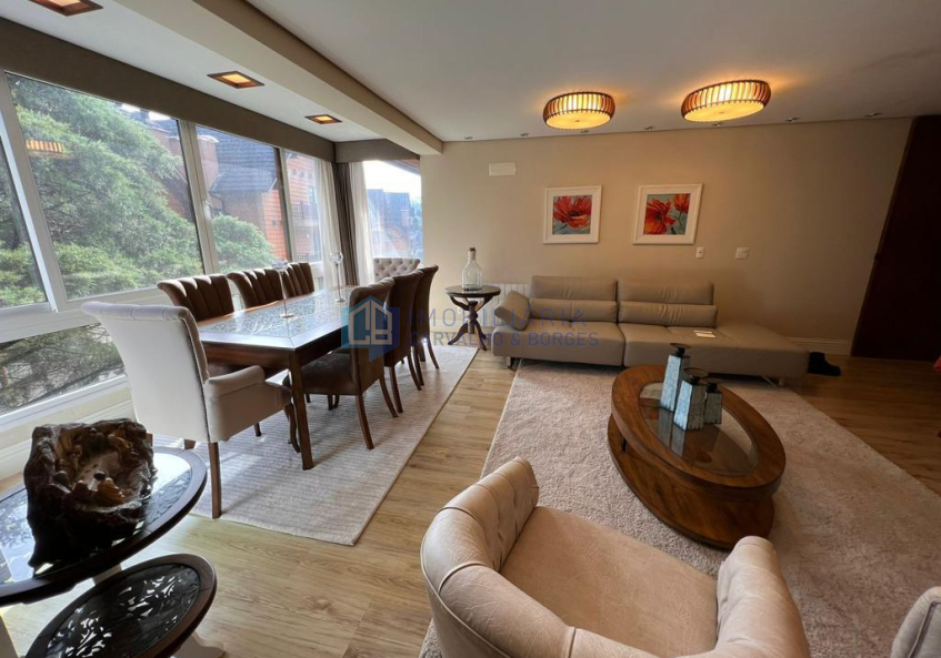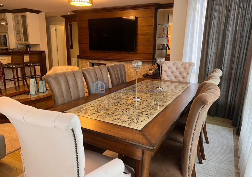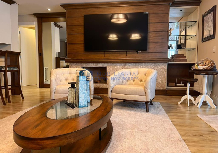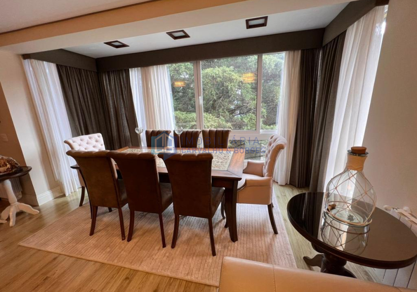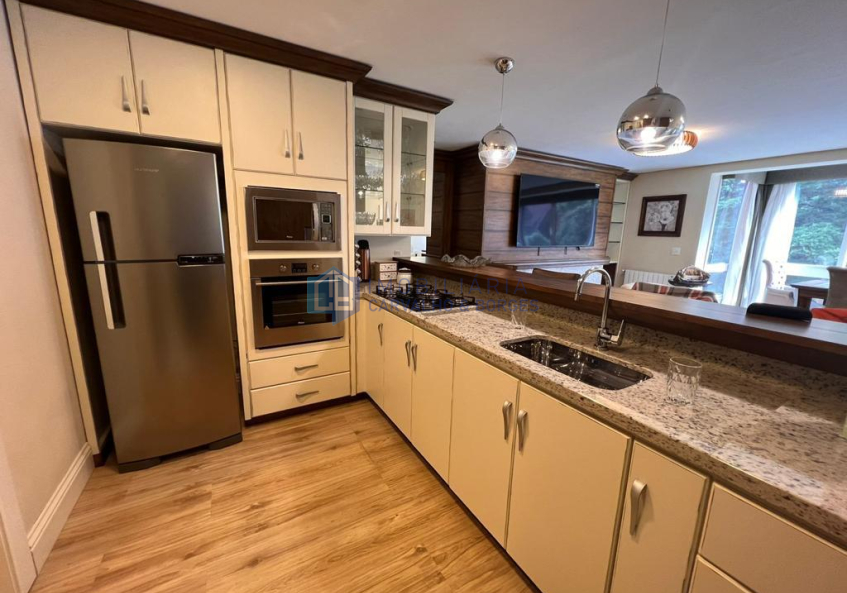 Ótimo apartamento mobiliado no centro de Gramado com área privativa de 194,03, 3 dormitórios sendo 1 suíte, 3 banheiros, estar e jantar, hall, adega, churrasqueira, área de serviço, lareira e 2 vagas de garagem cobertas.