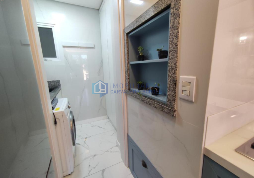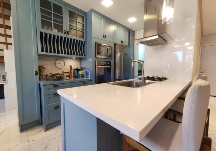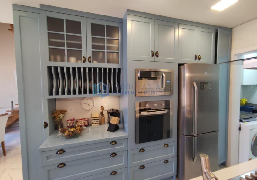 Cozinha com churrasqueira e área de serviço;