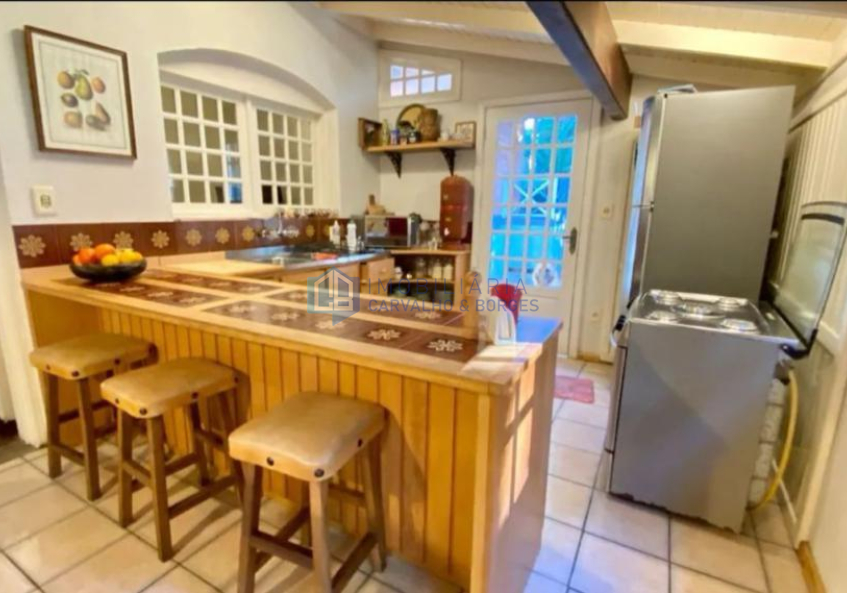 Cozinha equipada com churrasqueira e bancada;