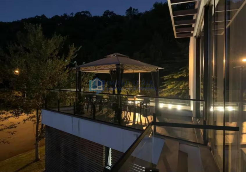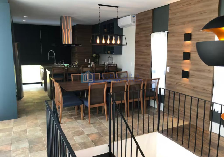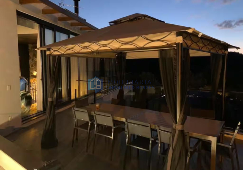 Sendo o andar térreo com 04 suítes e o andar superior com área social com cozinha/jantar, sala de estar e 2 sacadas, sendo uma com Gazebo e mesa de jantar com 10 cadeiras.