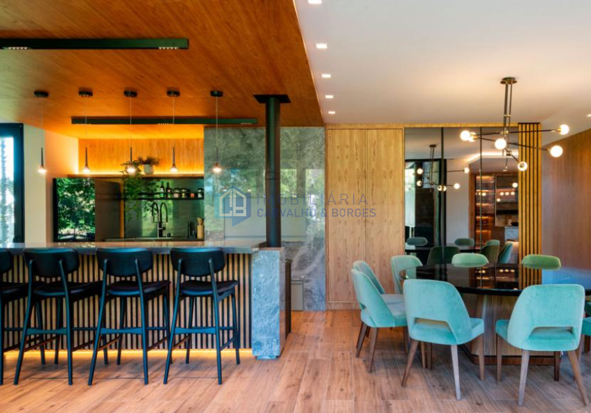 Adega com sala de jogos e espaço gourmet;